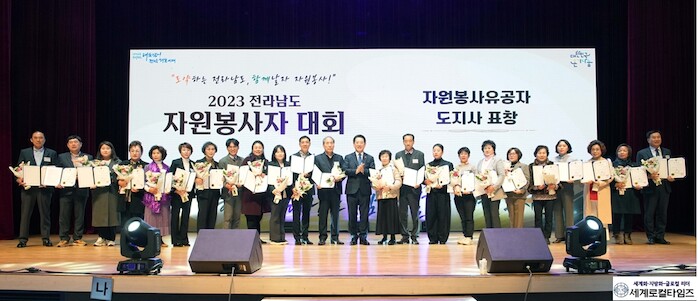 [세계로컬타임즈 김명진 기자] 전라남도는 12일 도청 김대중강당에서 올 한해 나눔봉사를 실천한 자원봉사자를 격려하고 자긍심을 높이기 위해 60만 자원봉사자 화합의 장인 ‘2023 전라남도 자원봉사자 대회’를 개최했다.
