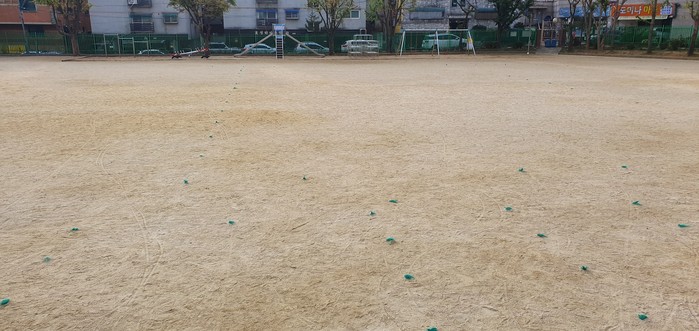 그리고 학교 운동장도 움푹 파인 곳이 여러군데 있을 정도로 면이 고르지 않고 울퉁불퉁해 축구동호회에서 24톤 트럭10대 정도의 마사토를 구입해 운동장 평탄작업을 했다.