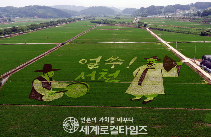 29일 서천군에 따르면 총 사업비 5000만 원을 들여 서천군 종천면 지석리 서부저수지(흥림저수지) 인근, 면적 8590㎡ 규모에 논 그림 조성 사업이 펼쳐졌다.