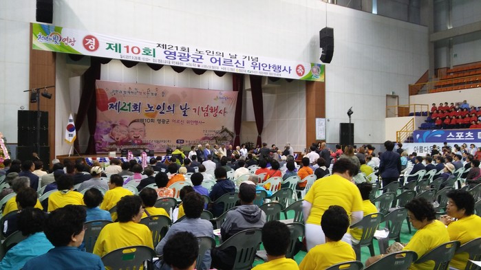 [세계로컬신문 이남규 조사위원] 전남 영광군(군수 김준성)이 제21회 노인의 날을 기념해 지난 28일 영광스포티움에서 어르신 위안행사를 열었다.
