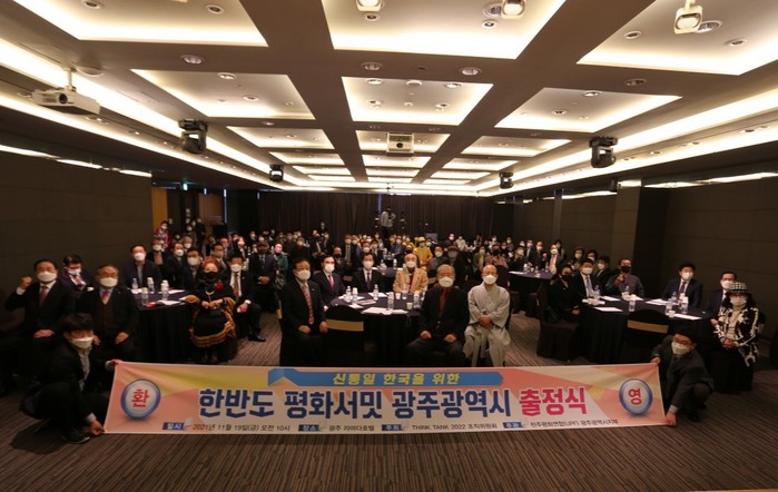[세계로컬타임즈 김준행 기자] 신통일한국을 위한 ‘한반도 평화서밋 광주광역시 출정식’이 장희정 한국웅변연설인중앙회 명예회장의 사회로 이상재 천주평화연합(UPF) 한국공동회장을 비롯해 광주지역 전.현직 의원 및 지도자 100여명과 오프라인 5000여명이 시청한 가운데 광주 라마다 호텔(4층 대연회장)에서 열렸다.