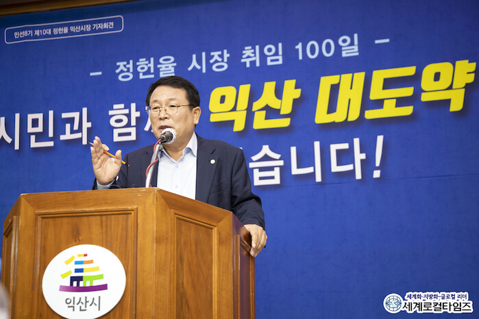 [세계로컬타임즈 조주연 기자] 정헌율 전북 익산시장이 취임 100일 기자회견에서 “혁신성장을 통해 지역의 확실한 변화와 발전을 이끌겠다”고 약속했다.