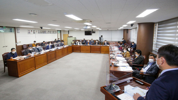 | ▲ 안산시의회 도시환경위원회가 15일 의회 대회의실에서 장상지구 공공주택사업 자족기능 강화 용역 설명회를 열고 있다.(사진=안산시의회) |