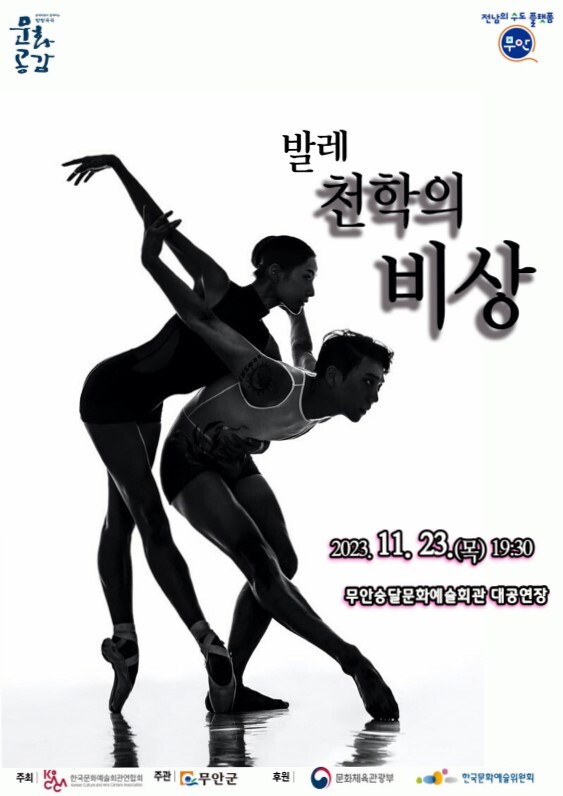 [세계로컬타임즈 박종현 기자] 전남 무안군은 ‘2023년 문화공감방방곡곡 공모사업’에 선정된 발레 ‘천학의 비상’ 공연을 23일 저녁 7시 30분 승달문화예술회관 대공연장에서 개최한다.