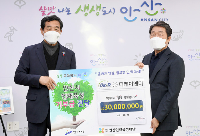 [세계로컬타임즈 김상우 기자] (재)안산인재육성재단은 21일 ㈜디케이앤디로부터 안산시 인재육성을 위한 기부금 3,000만 원을 기탁 받았다.