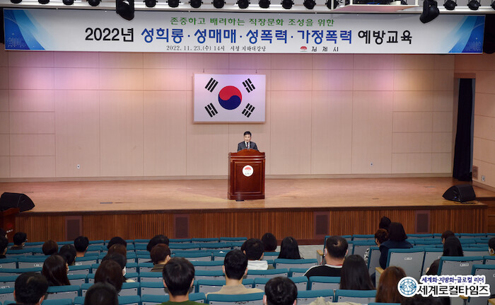 23일 김제시에 따르면 이날 시청 직원 300여명을 대상으로 2022년 성희롱·성매매·성폭력·가정폭력 예방 교육이 실시됐다. 그런데 같은날 진행될 행정사무감사 피감부서 직원들 조차 이 300여 명에 이름을 올렸다.