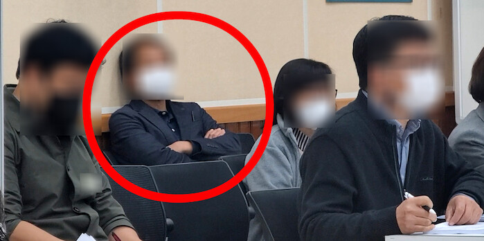 같은날 진행된 또다른 피감부서 감사중에는 한 직원이 피감부서 좌석 맨 뒤에 앉아 등을 벽에 기댄채 팔짱을 끼며 눈을 감고 감사에 임하는 모습이 카메라에 포착됐다.