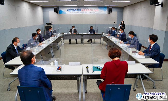[세계로컬타임즈 조주연 기자] 정헌율 전북 익산시장이 사립작은도서관 운영 활성화를 위해 도서관 운영자들과 마주 앉았다.