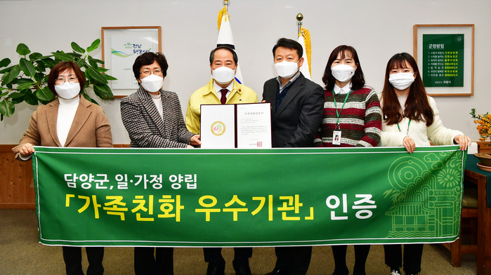 담양군은 2016년 처음 우수기관으로 인증된 이후 다시 우수기관으로 인증받았으며, 매주 가족사랑의 날 운영, 자유로운 육아휴직, 유연근무 활성화와 가족돌봄휴가, 휴양시설 제공 등을 통해 가족친화적인 직장분위기 조성에 노력한 점을 높이 평가받았다.