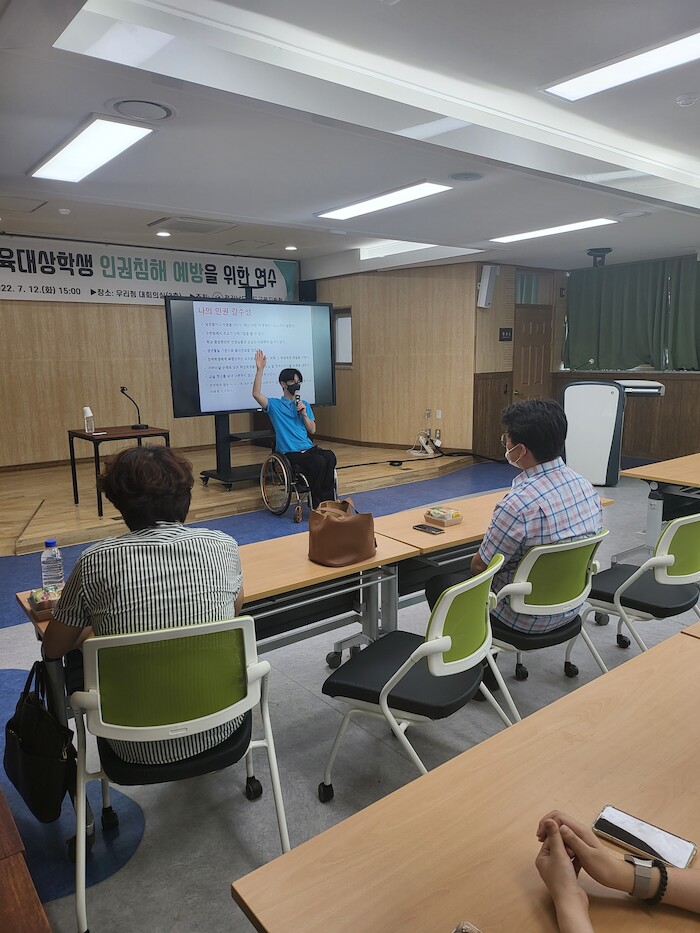 연수에 참여한 교사는 “특수교육 대상 학생들이 학교에서 인권침해를 예방하고 강화하는 방법을 기를 수 있고, 더 나아가 사회에서도 스스로 인권을 보호할 수 있도록 도울 수 있도록 적극적으로 인권에 대해 관심을 가지고 지원해야겠다고 느꼈다”며 “특수교사 뿐만 아니라 다양한 대상들이 특수교육대상학생의 인권침해를 예방할 수 있는 방법에 대해 배울 수 있는 기회가 돼 좋았다”라고 말했다.