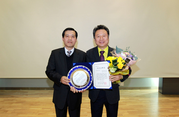 | ▲ 안승남 경기도 도의원(우측)이 조례 우수상을 받고 기념 촬영을 하고 있다. |