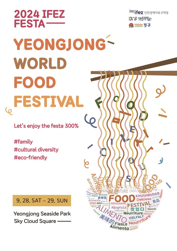 [세계로컬타임즈 = 이 호 기자] 인천경제자유구역청은 오는 9월 28일부터 29일까지 영종국제도시 씨사이드파크 하늘구름광장 일원에서 ‘2024 IFEZ FESTA 영종 세계음식축제’를 개최한다고 밝혔다.