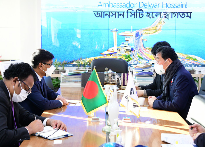 [세계로컬타임즈 김상우 기자] 윤화섭 안산시장은 4일 집무실에서 델와르 호세인(Delwar Hossain) 주한 방글라데시 대사를 만나 환담했다.