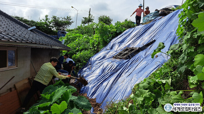 [세계로컬타임즈 조주연 기자] 전북 고창군에 폭우 후 남겨진 아픔을 지우기 위해 주민들이 한 마음이 됐다.