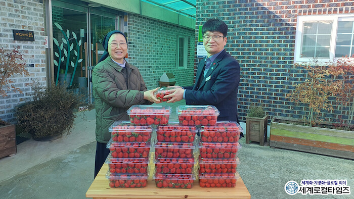 [세계로컬타임즈 조주연 기자] 전북 고창군 체류형농업창업지원센터가 한 사회복지시설에 직접 재배한 딸기를 전했다.