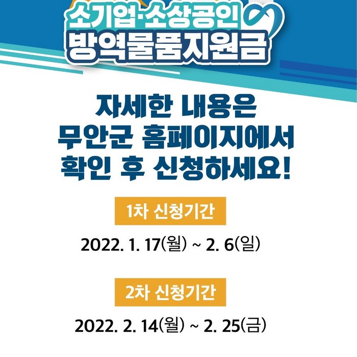 ▲ 무안군은 오는 2월 25일까지 소기업·소상공인 코로나19 방역물품비 지원 신청을 접수한다[사진=무안군] |