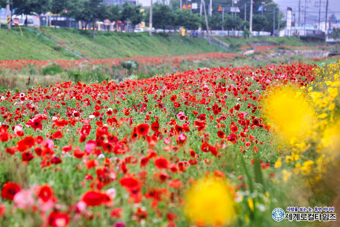 [세계로컬타임즈 조주연 기자] 전북 임실군 천변가에 붉은 양귀비꽃이 만개했다.