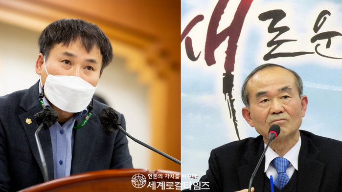 ▲오상민(왼쪽) 김제시의회 의원과 박준배 김제시장 (사진=김제시의회 제공 디자인=세계로컬타임즈) |