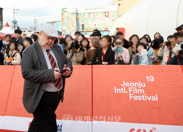 [세계로컬신문 조주연 기자] 제19회 전주국제영화제 개막식에 참석한 아이하라 히로(AIHARA Hiro) 감독이 핸드폰을 보면서 레드카펫을 통해 입장하고 있다.