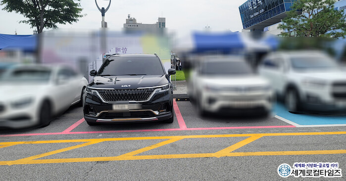[세계로컬타임즈 글·사진 조주연 기자] 여성운전자를 배려하기 위해 마련된 여성우선주차구획에 한 남성 국회의원의 차량이 포착됐다.