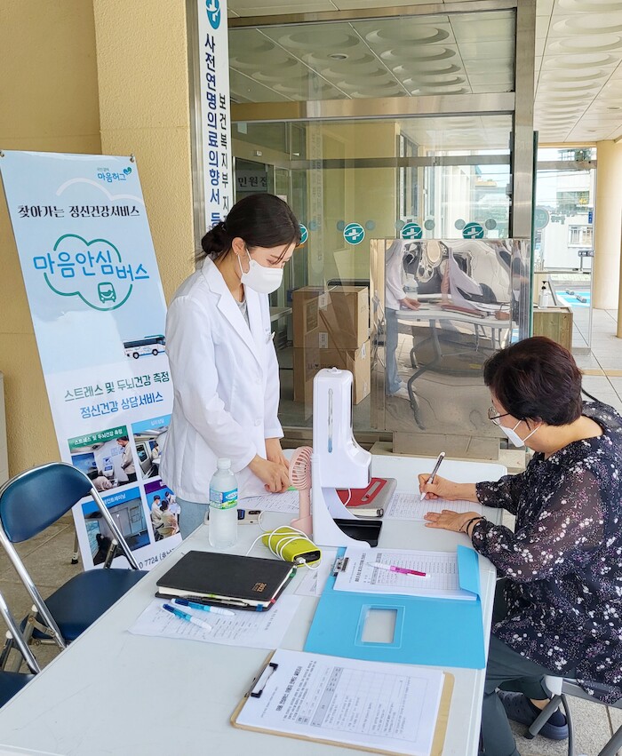 마음 안심버스 프로그램은 버스 내 공간과 장비를 활용해 정신건강 평가, 스트레스 측정 등을 실시하고 마음건강 회복과 스트레스 완화 방법에 대해 정신건강 전문가가 심리상담을 제공하는 서비스다.