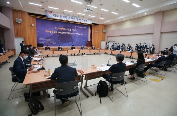 | ▲청와대와 정부, 지자체와 지역 산·학·연 관계자 등이 참여해 경북경제투어 후속 간담회를 개최하고 있다. (사진=경북도 제공) |