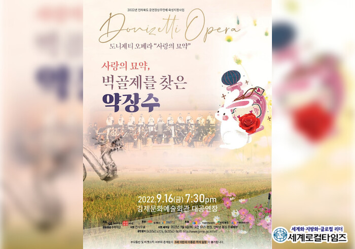 [세계로컬타임즈 조주연 기자] 전북 김제문화예술회관에서 오는 16일 상주단체 드림필 하모닉오케스트라의 ‘사랑의 묘약, 벽골제를 찾은 약장수’가 공연된다.