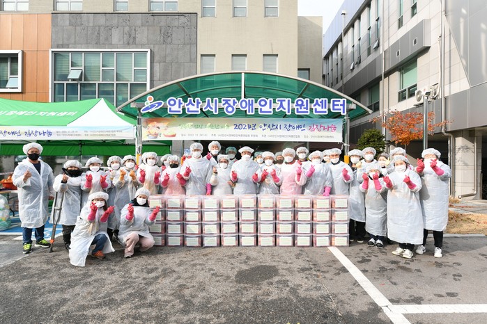 [세계로컬타임즈 김상우 기자] 안산시 장애인단체 총연합회는 24일 장애인단체 회원 등 30여 명이 참여한 가운데 ‘2021년 사랑의 김장행사’를 진행했다.
