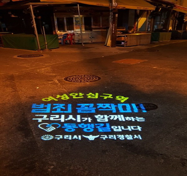 이를 위해 시는 제1회 추경에 사업비 3500만원을 확보해 여성안심구역인 구리전통시장과 토평동 원룸단지 주변 등 여성안심 귀갓길과 취약지역에 로고젝터 설치, 비상벨위치 및 안심구역 알림 디자인 조명 등을 설치할 계획이다.