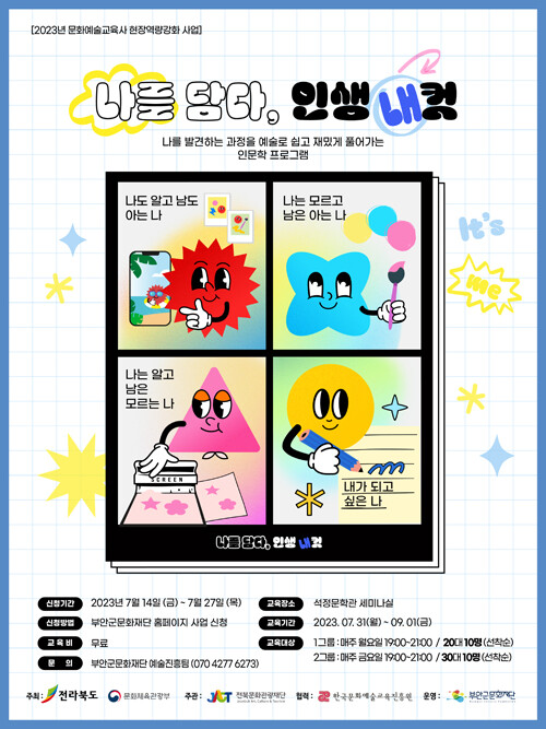 [세계로컬타임즈 조주연 기자] 전북 (재)부안군문화재단(이하 재단)이 청년을 대상으로 한 인문학 프로그램 ‘나를 담다, 인생 내 컷’을 운영한다.