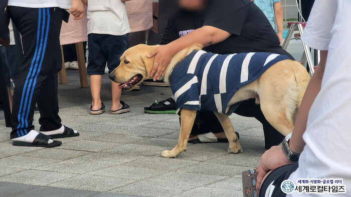 [세계로컬타임즈 글·사진 조주연 기자] 17일 오후, 전북 정읍의 수백명이 모인 행사장에서 입마개를 하지 않은 대형견이 아이들 주위를 맴돌면서 긴장감을 불러 일으켰다.