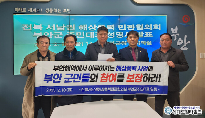 [세계로컬타임즈 조주연 기자] 전북 부안군 주민들이 지역 내 해상풍력 발전단지 참여를 보장하라고 요구했다.