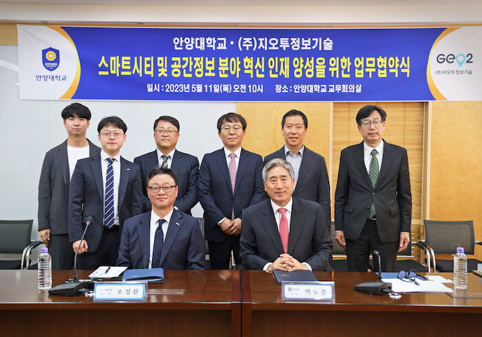 박노준 안양대 총장과 오정환 지오투정보기술 대표는 11일 안양대 교무회의실에서 혁신 인재 양성을 위한 산학협력 MOU를 체결했다.