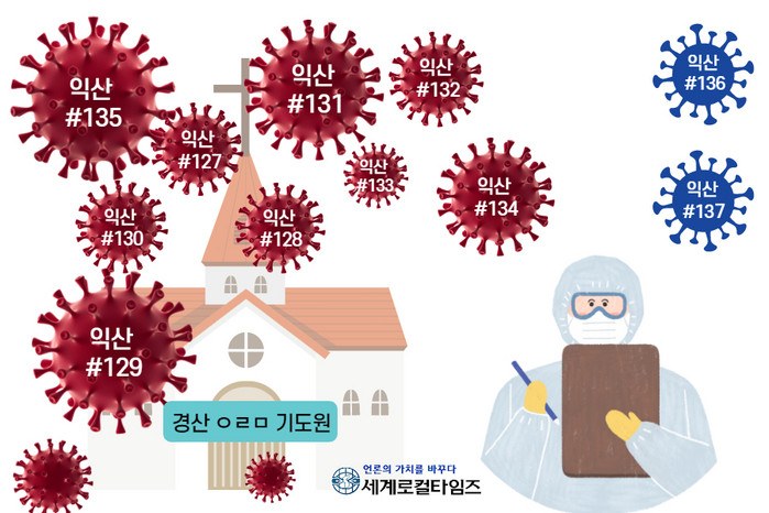 16일 익산시 보건당국에 따르면 이날 오후 확진 판정을 받은 11명(익산 #127~ #137) 중 경북 경산시 열린문기도원 관련 확진자가 9명(익산 #127~ #135번)인 것으로 파악됐다.