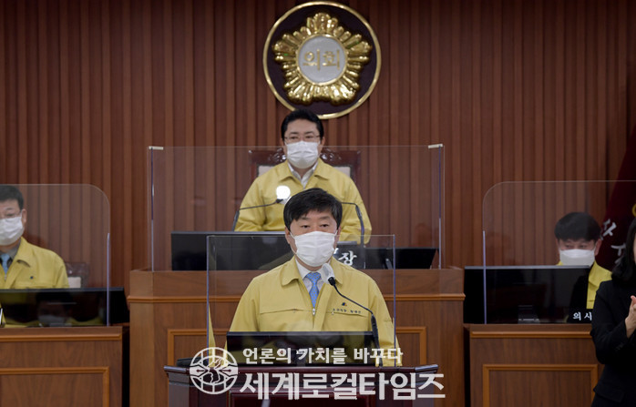 ▲3일 황명선 논산시장이 논산시의회에 출석해 시정연설을 하고 있다. (사진=논산시 제공) |
