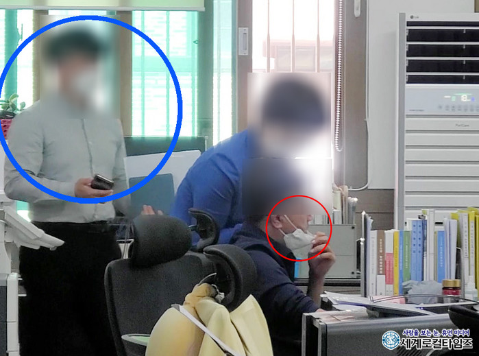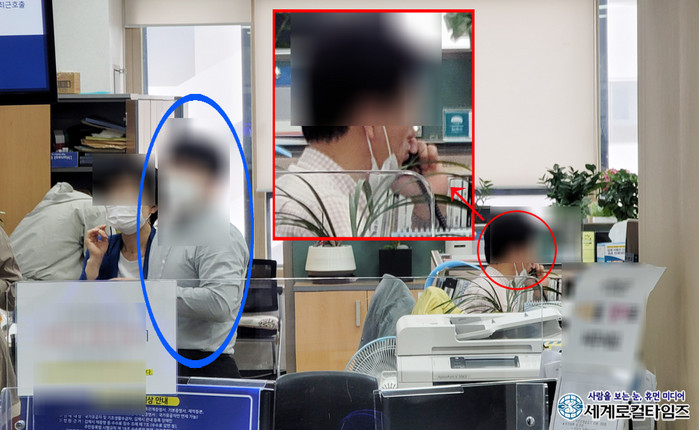 [세계로컬타임즈 글·사진 조주연 기자] 정부가 민원창구의 방역실태를 점검하는 현장에서 관심 없는 듯 소위 ‘턱스크’를 하는 지자체 공무원이 카메라에 잡혔다.