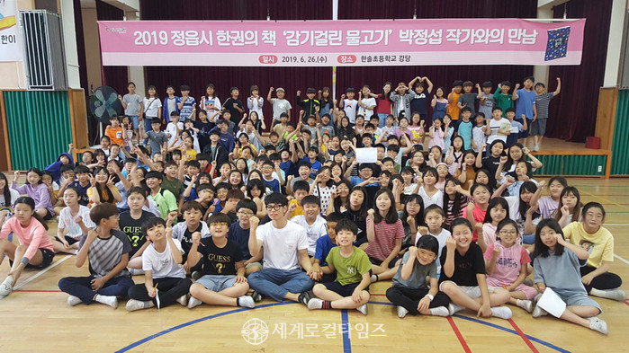 ‘감기 걸린 물고기’의 저자 박정섭 작가가 전북 정읍시를 찾아 초등학생들과 자신의 작품에 대한 이야기를 나눴다.