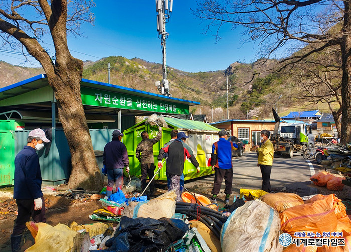 [세계로컬타임즈 조주연 기자] 지난 9일 전북 진안군의 한 마을 주민들이 봄맞이 마을 대청소를 하고 있다. 이날 안정마을 주민들은 동네에 쌓인 약 10톤의 묵은 쓰레기를 수거했다.