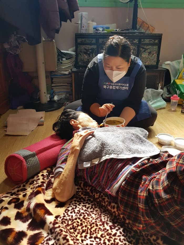| ▲ 대구시사회서비스원이 2020년 코로나19 대유행으로 민간장기요양기관의 방문요양서비스가 중단된 독거노인 가구에 긴급돌봄서비스를 제공하고 있다(사진=대구시사회서비스원) |