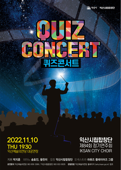 6일 익산시에 따르면 익산시립합창단은 오는 10일 오후 7시 30분에 익산예술의전당 대공연장에서 대중들에게 많이 알려진 영화음악부터 팝송, 뮤지컬 곡들과 아이들을 위한 디즈니 만화영화 곡들까지 다채로운 장르의 음악을 준비해 ‘QUIZ CONCERT’를 개최한다.