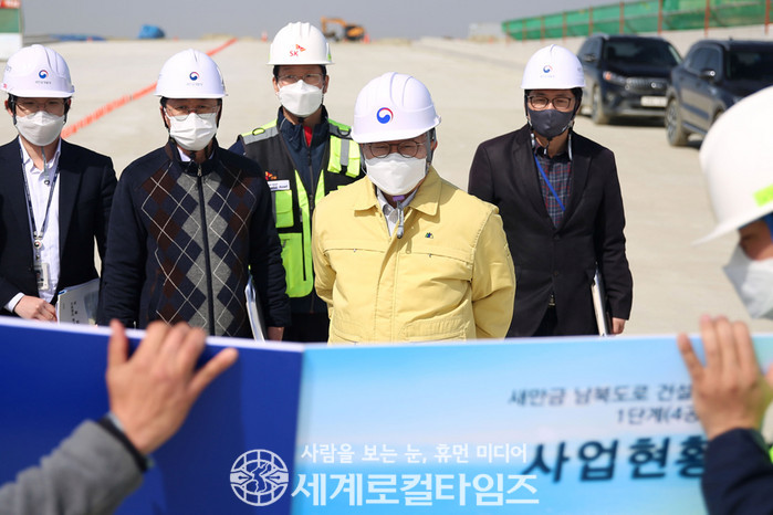 [세계로컬타임즈 조주연 기자] 양충모 새만금개발청장은 16일 새만금 남북도로 4공구 도로 건설 현장을 방문해 해빙기 대비 안전관리 상황을 점검하고 코로나19 예방과 확산방지를 위한 방역지침 준수를 당부했다.