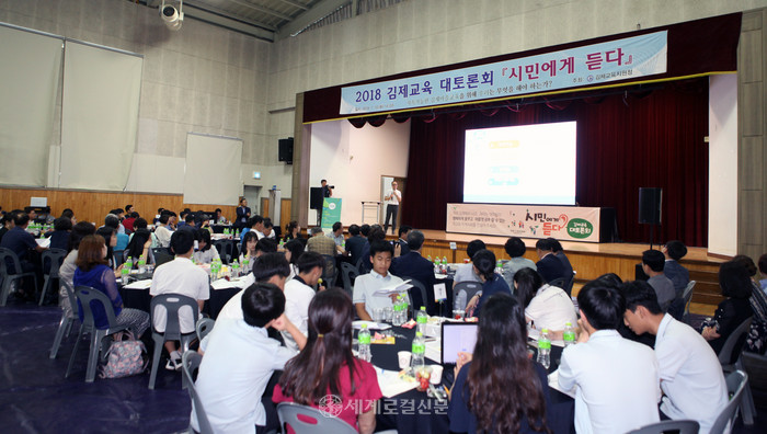 김제교육지원청이 주최한 '시민에게 듣다'라는 김제교육 토론회에 참가하기 위해 모인 이들은 초·중·고 학생들을 비롯해 교직원, 학부모, 교육청 관계자들, 소상공인, 주부, 농업인까지 사전참가신청자 220명을 포함 약 300여명이 토론회장을 가득 메웠다.