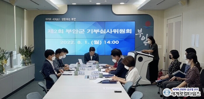 [세계로컬타임즈 조주연 기자] 전북 부안군이 자발적 기탁금품에 대한 접수 여부를 심의하기 위한 ‘2022년 제2회 부안군 기부심사위원회’를 1일 개최했다.