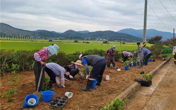 [세계로컬타임즈 이남규 기자] 장흥군 용산면은 지난 9월 28일과 10월 6일 금곡마을과 두암마을에 수국을 식재했다.