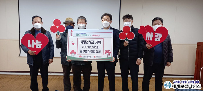 [세계로컬타임즈 조주연 기자] 전북 김제시 금구면 이장협의회가 ‘희망2022 나눔캠페인’ 성금 200만원을 기탁했다.