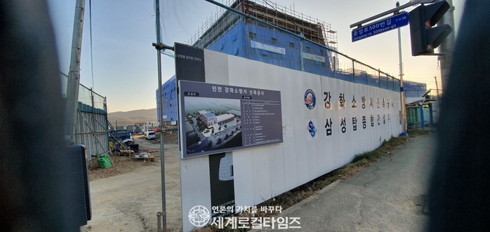 [세계로컬타임즈 글·사진 유영재 기자] 지난 1월 착공한 강화군 불은면 삼성리 소재 인천 강화소방서 신축공사가 내년 5월 준공을 목표로 공사가 한창 진행 중인 가운데 ‘안전불감증’이 의심되는 정황이 포착되면서 논란이 예상된다.
